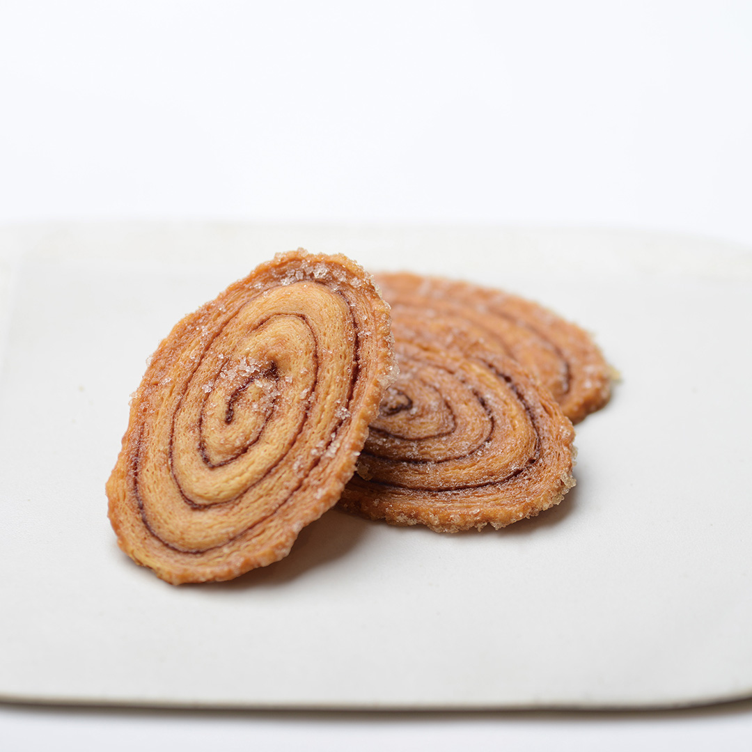 フランス語で「渦巻」を意味する Tourbillon。その名の通り、シナモンパウダーを巻き込んだパイ生地が美しい渦を描きます。香り高いシナモンと、パリッとした軽快な食感が特徴です。