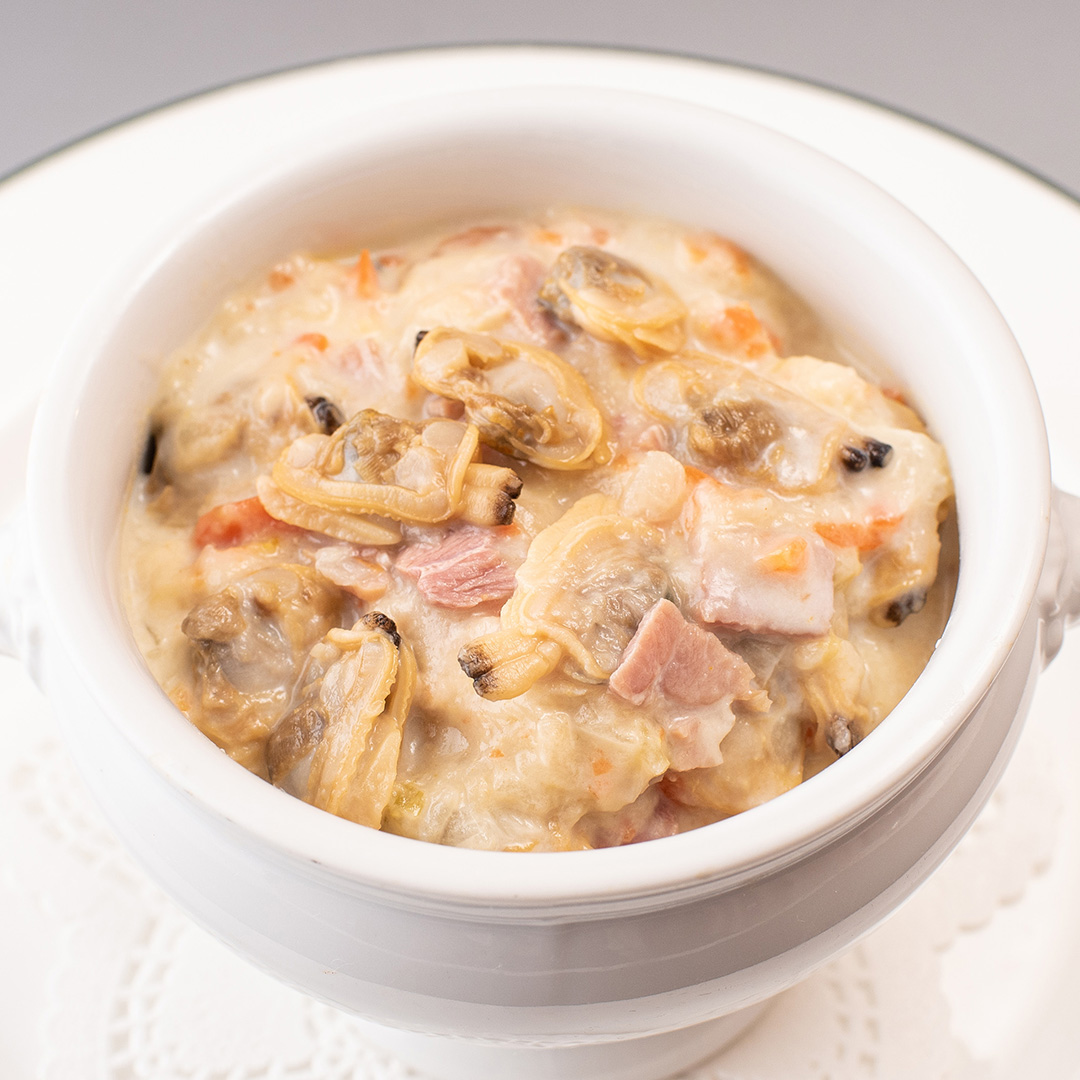 魚介の旨味とベーコンの風味が溶け合う、まろやかでコク深いクリームスープ。